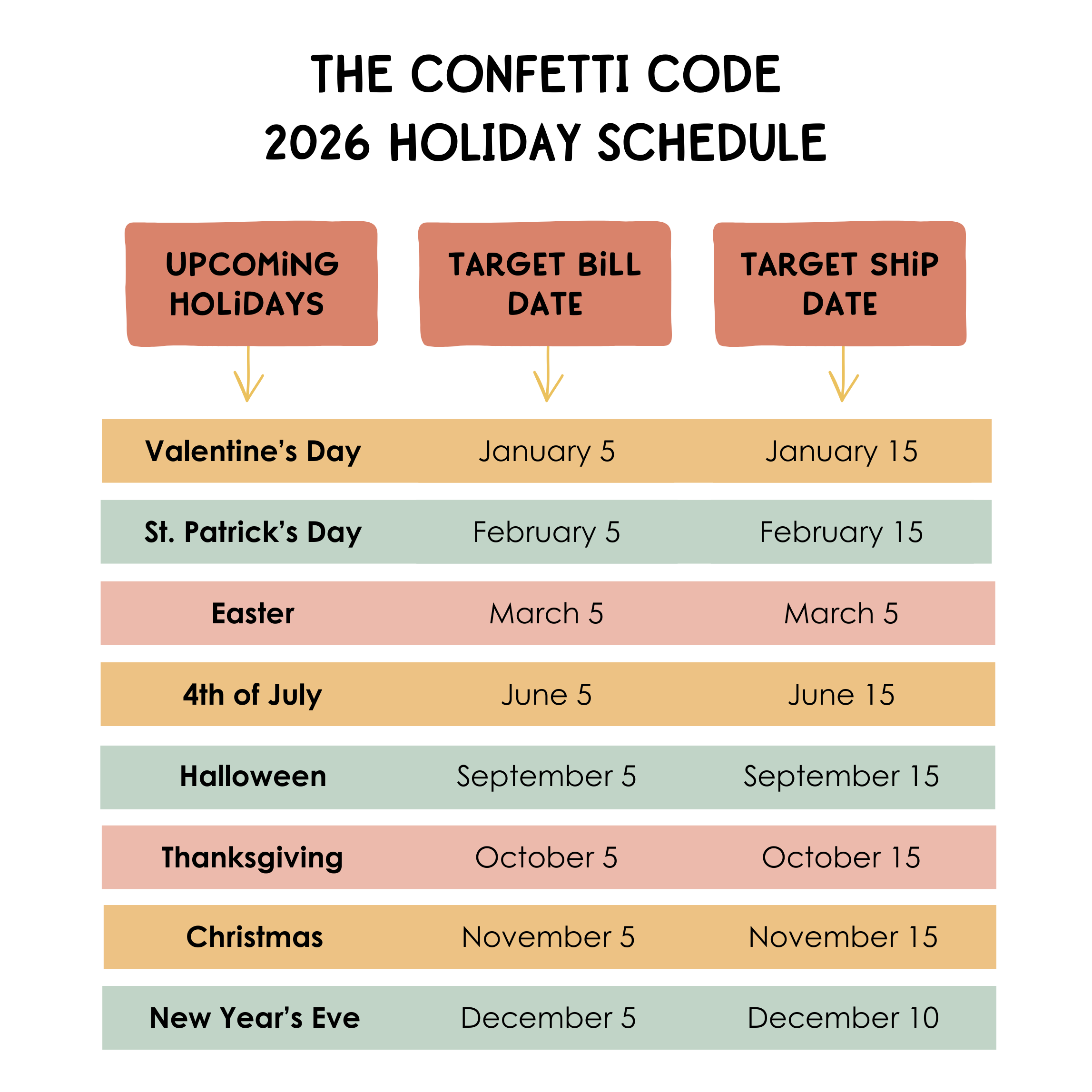 Currently, our subscription plans include the following holidays. If you don't celebrate or want to skip one of these holidays for any reason, you can do so at any time before that box is billed!